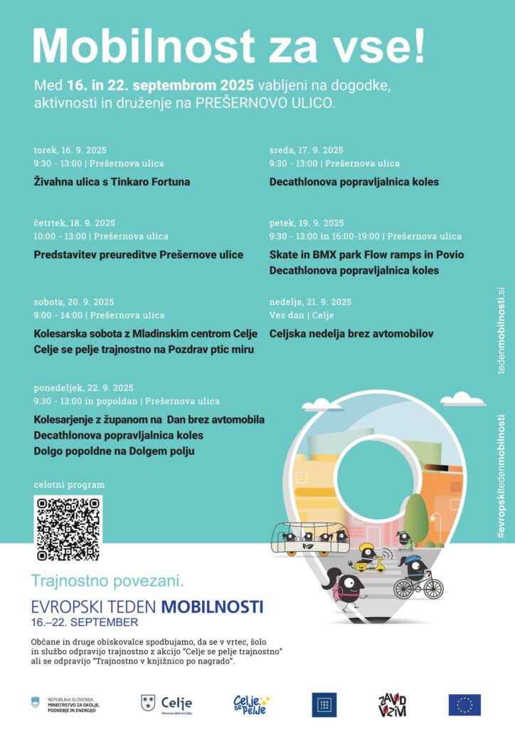 Vabimo vas, da se pridružite dogodkom, ki bodo potekali v Celju med 16. in 22. septembrom 2025, na Prešernovi ulici.