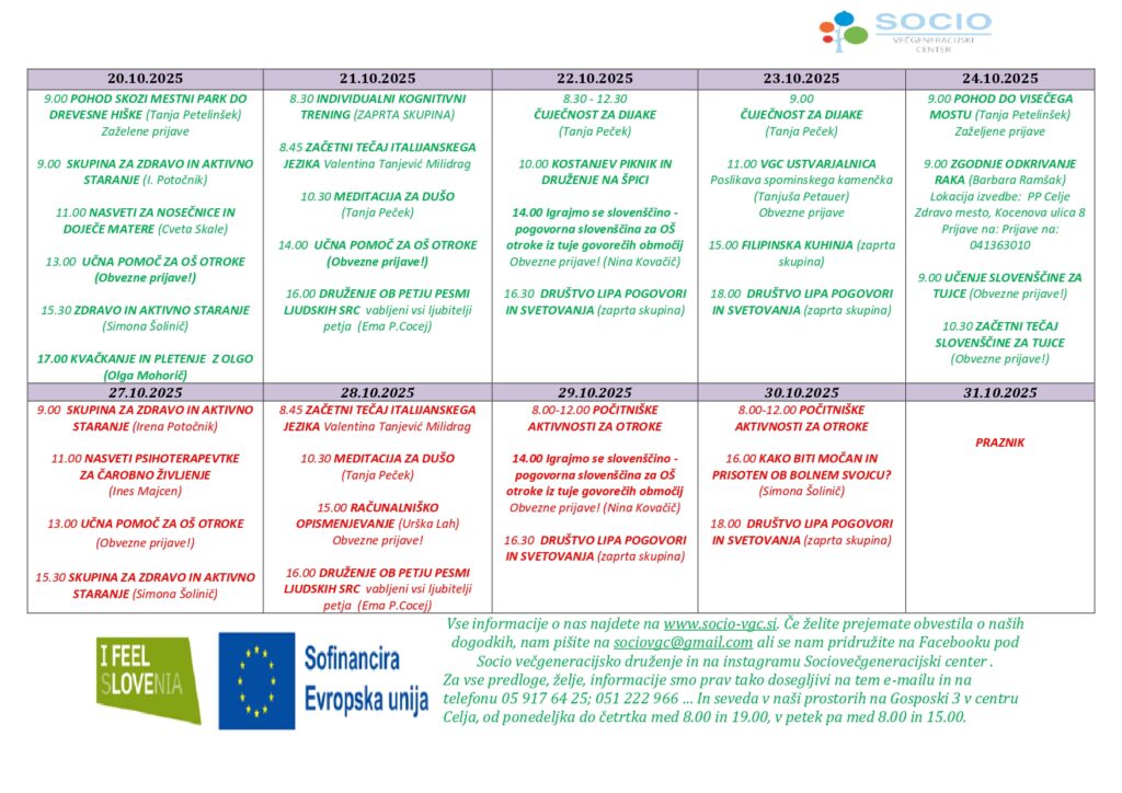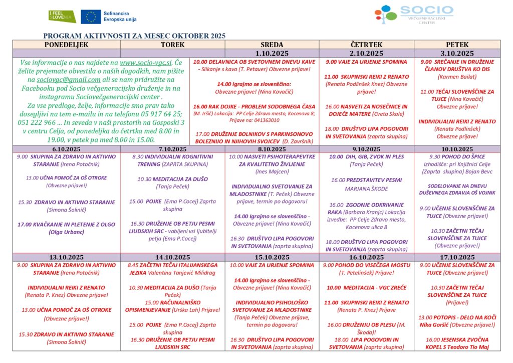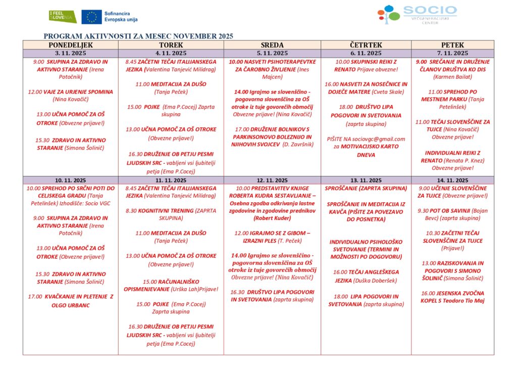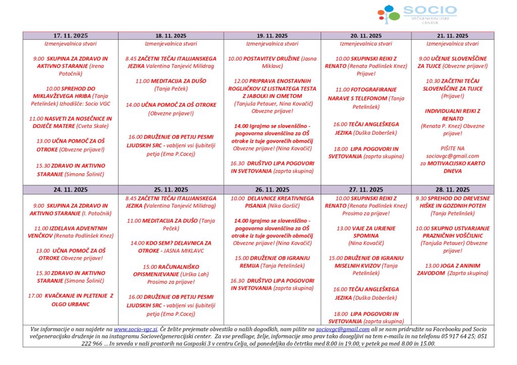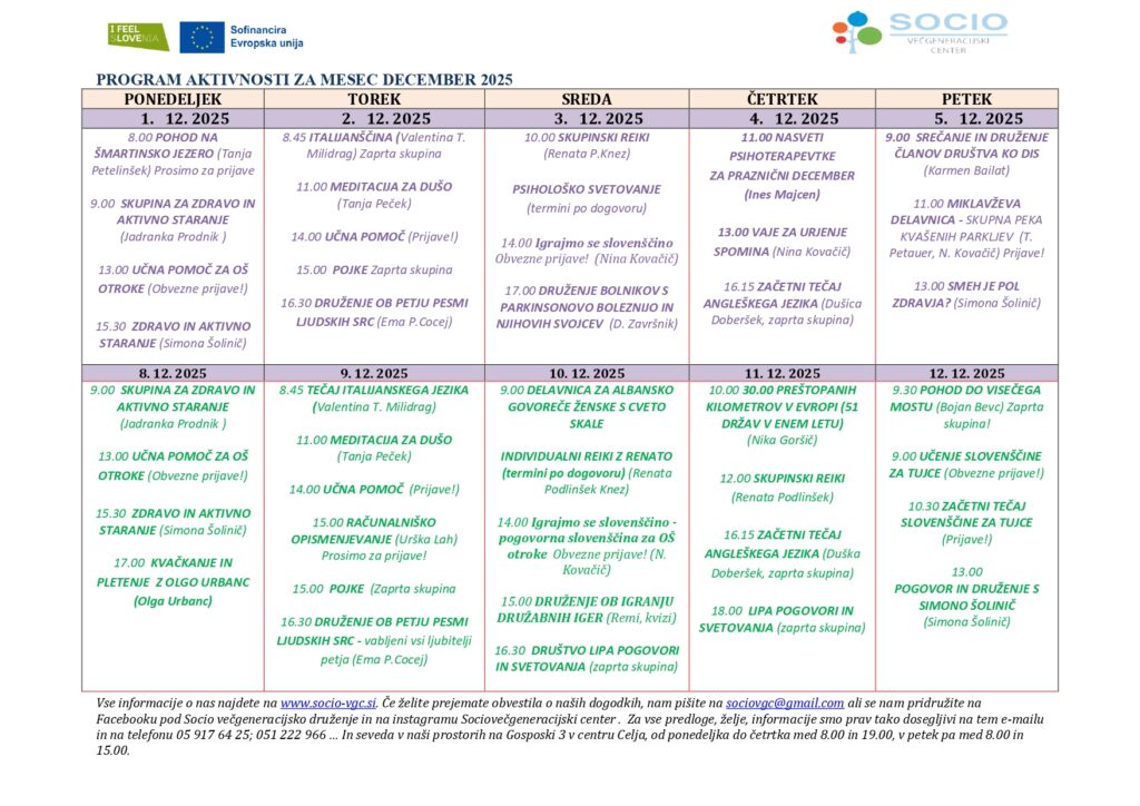 Naš tokratni urnik je še posebej pester in poln zanimivih aktivnosti in prazničnega druženja.