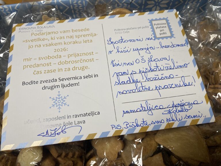 Iskrena hvala ravnateljici gospe Marijani Kolenko, učencem in zaposlenim Osnovne šole Lava za čudovito gesto – doma pečene piškote za