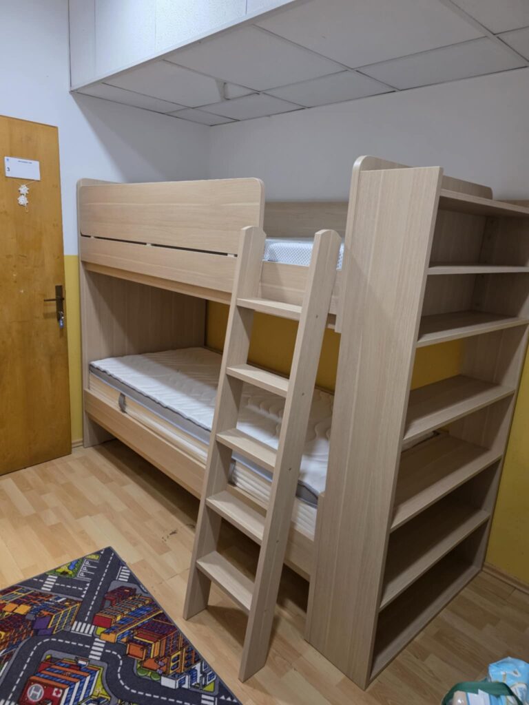V Materinskem domu Celje nadaljujemo s skrbnim urejanjem in posodabljanjem bivalnih prostorov. V eni izmed sob smo namestili nov pograd, ki bo omogočil več prostora ter boljšo organizacijo vsakdanjega življenja mamic in otrok. Veseli nas, da lahko ustvarjamo prijetno in funkcionalno okolje, ki podpira njihovo pot k samostojnosti.