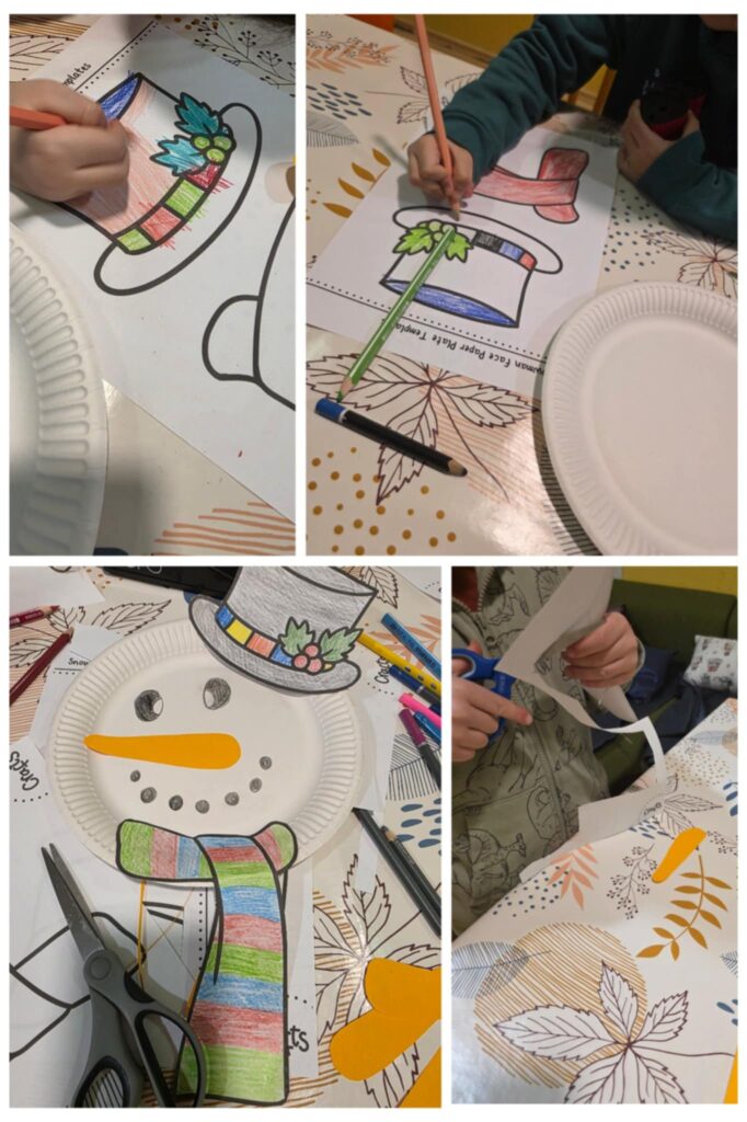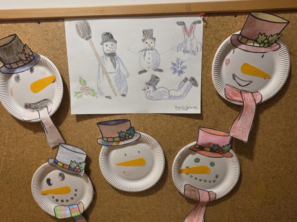 Otroci so z veseljem barvali, rezali in sestavljali, mamice pa so jih pri tem spodbujale in jim pomagale. Nastali so snežaki najrazličnejših obrazov, klobukov in šalov – vsak poseben in unikaten, tako kot njihovi ustvarjalci.