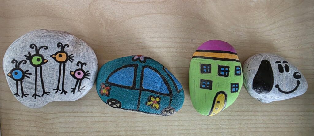 Tokrat smo si vzele čas za sproščeno ustvarjanje in na kamenčke naslikale živali, cvetlice, prijazna sporočila in druge vesele motive. Nastali so pravi mali umetniški zakladi, ki bodo razveseljevali vsakogar, ki jih bo našel. Ustvarjanje nas je povezalo, nasmejalo in napolnilo z dobro voljo. 🌸🐞🐢