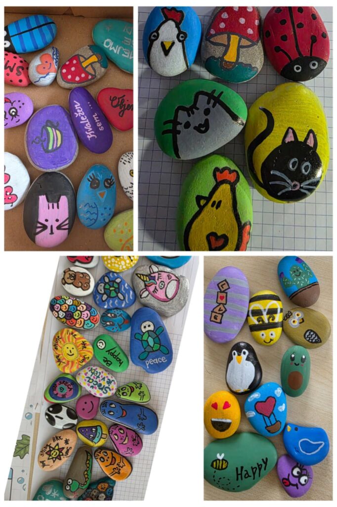 Tokrat smo si vzele čas za sproščeno ustvarjanje in na kamenčke naslikale živali, cvetlice, prijazna sporočila in druge vesele motive. Nastali so pravi mali umetniški zakladi, ki bodo razveseljevali vsakogar, ki jih bo našel. Ustvarjanje nas je povezalo, nasmejalo in napolnilo z dobro voljo. 🌸🐞🐢